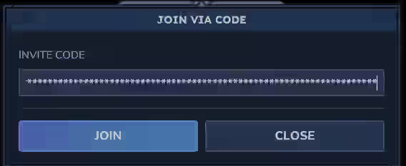 メインメニューのSERVERSから左下の”JOIN VIA CODE”を選択