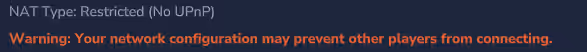 警告:ネットワーク設定により、他のプレイヤーが接続できない場合があります