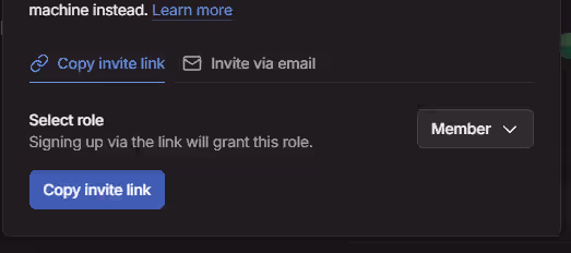 続いて誰か一人が管理画面にアクセスし”Invite external user”をクリック。招待リンクをコピーして全員がアクセスすれば準備完了です。
